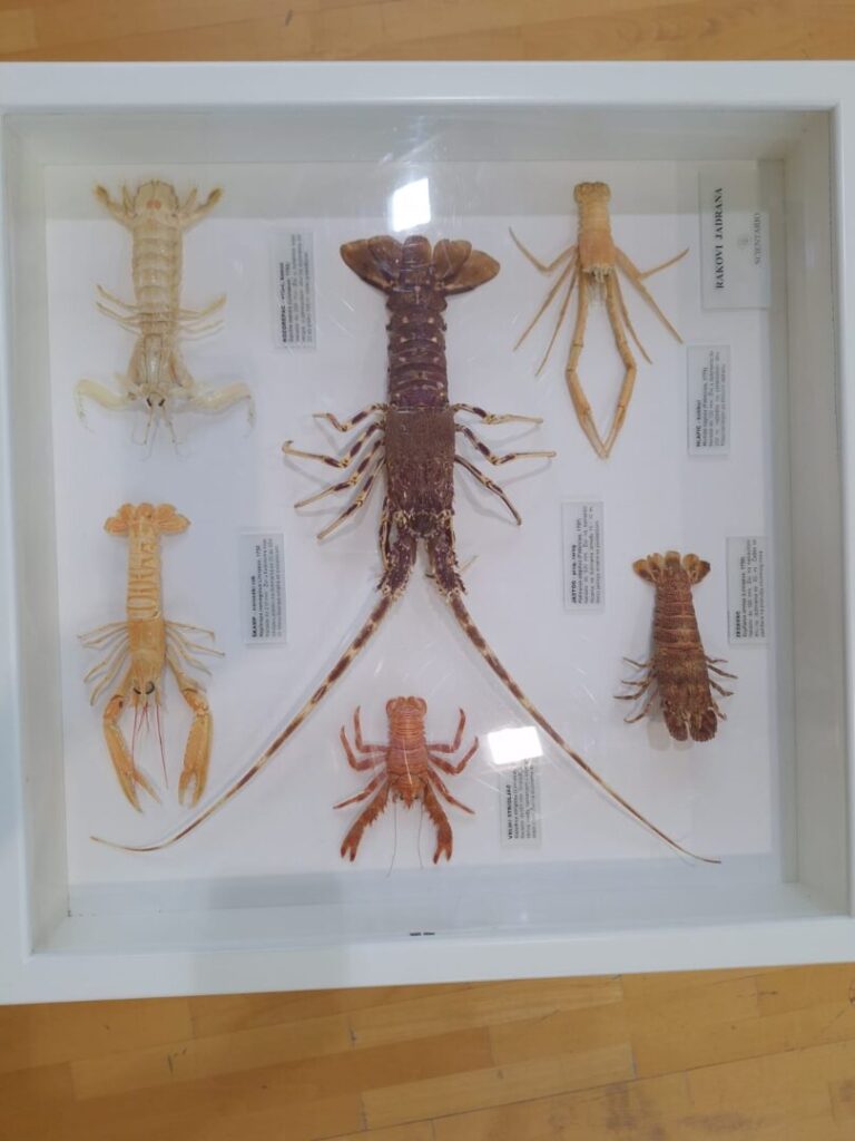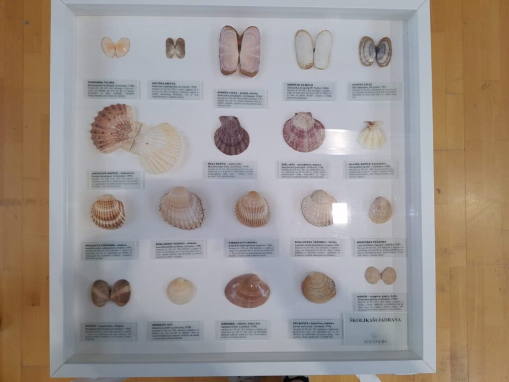 školjaka i puževa, 36 vrsta prepariranih jadranksih rakova, bodljikaši, koralji, spužve